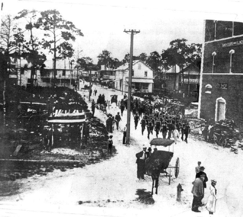 Never one to pass up the opportunity to showcase one of his newly developed cities, Henry Flagler offered his Royal Palm Hotel and the city as a place for soldiers to train prior being deployed to Cuba. He felt that the notoriety as a training ground for the war would be great to promote the city and his grand hotel.