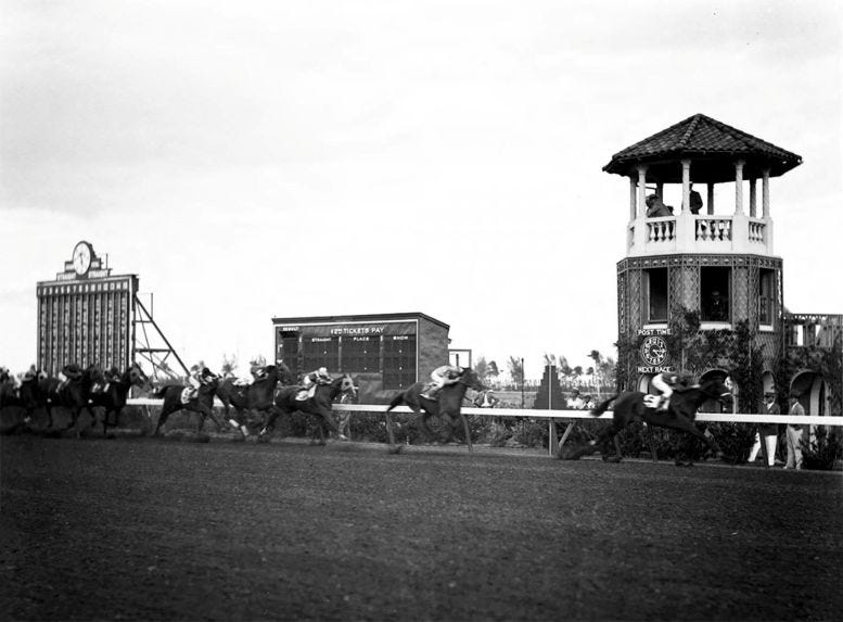 The two men began platting subdivisions for residential housing, as well as infrastructure and establishments of entertainment to attract buyers to the western suburbs of South Florida. A dog and horse racetrack was constructed and was later expanded by millionaire Joseph Widener to provide an institution that became synonymous with the city. The Hialeah Racetrack would become a popular attraction for dignitaries and tourists while it operated conducted thoroughbred racing from the early 1930s until 2001.