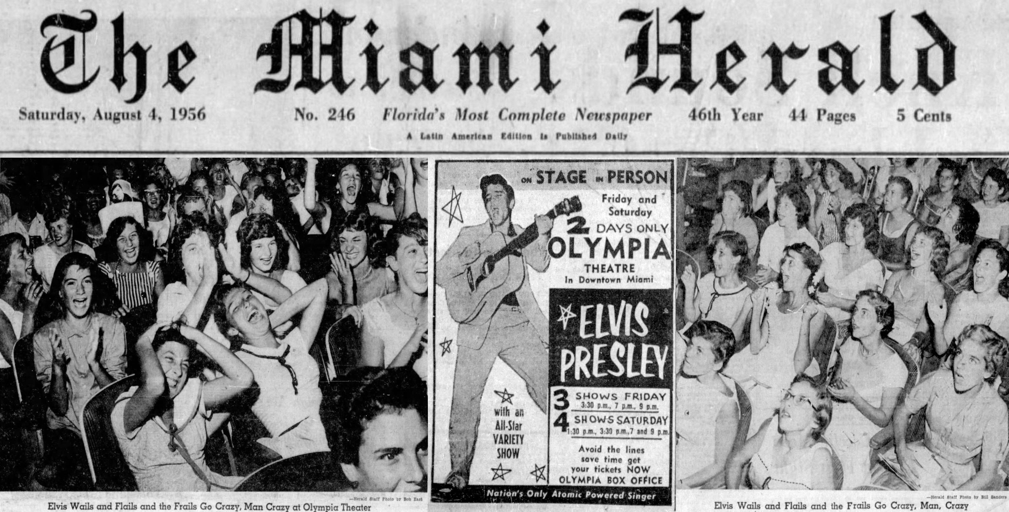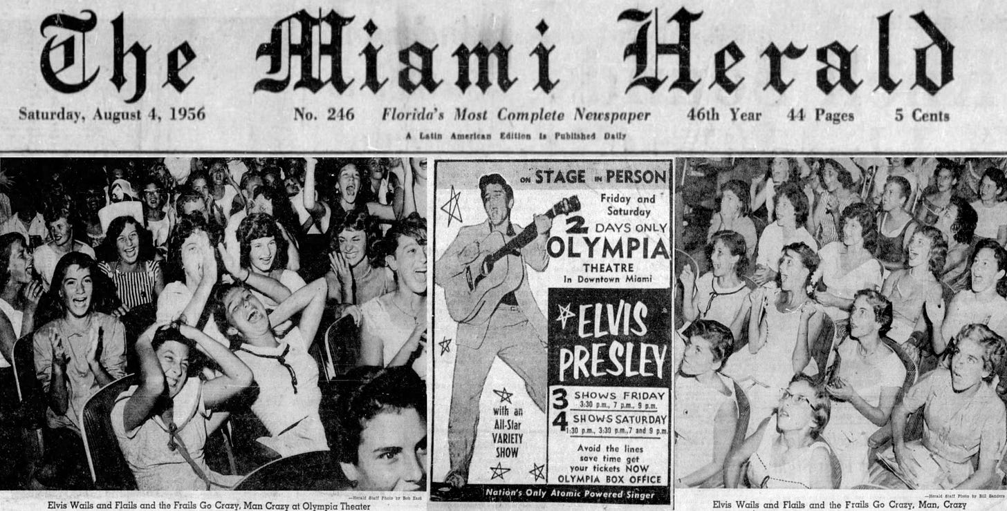 Miami Herald: “Ocean of Screams Breaks Over Elvis”, Denne Petitclerc, August 4th, 1956