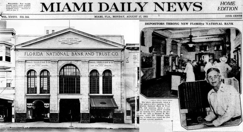Miami News: “Depositors Throng New Florida National Bank”, August 17, 1931.