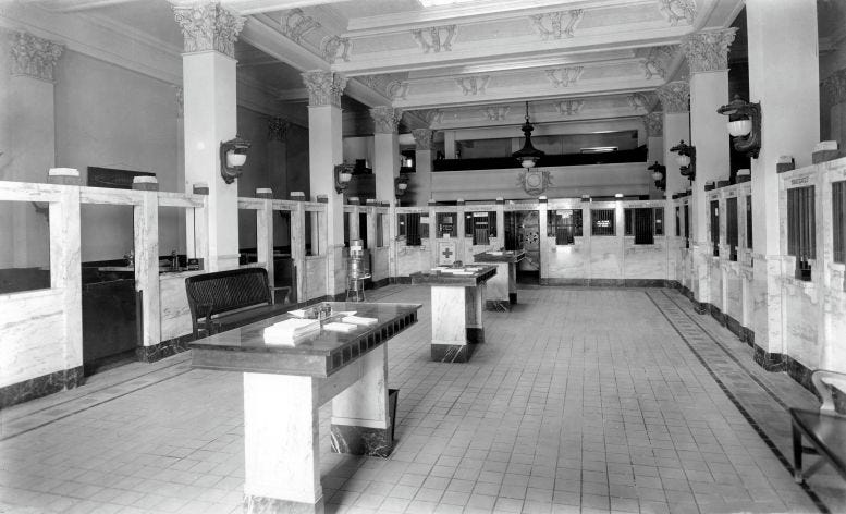 The Florida National Bank & Trust, headquartered in Jacksonville Florida and headed by Alfred I du Pont, formally opened their Miami branch on Monday, August 17, 1930, at 118 East Flagler Street in downtown Miami. Du Pont’s bank took over the assets and location of City National Bank of Miami, which was backed by retailer J.C. Penney and had operated out of the Flagler Street edifice from 1926 until December 1930, when it abruptly closed due to insolvency.