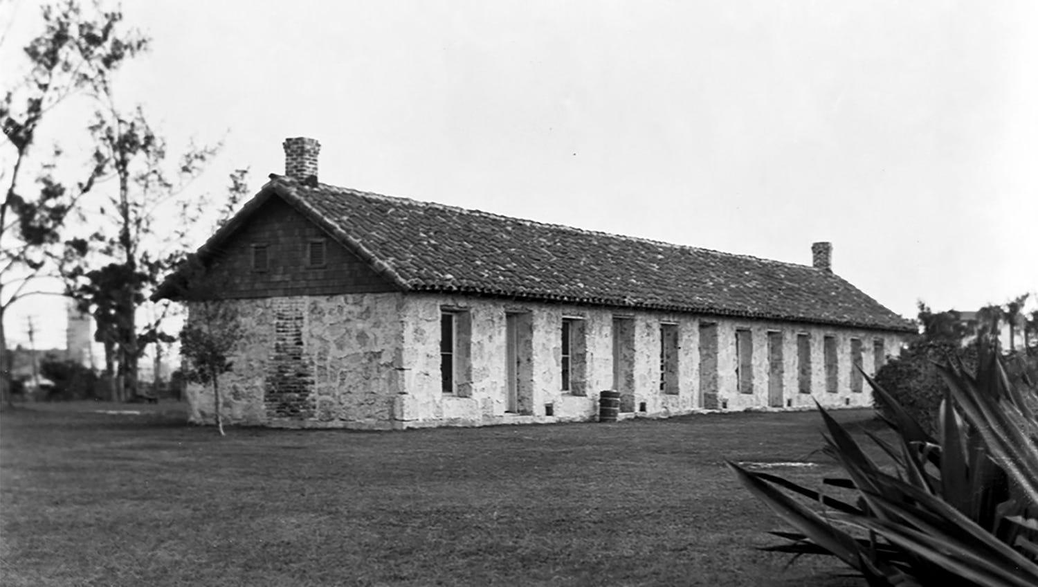 The Fort Dallas Barracks were constructed a few years after William English purchased property once owned by his uncle, Richard Fitzpatrick, who purchased and occupied the land on the north and south side of the Miami River from the late 1820s until the onset of the Second Seminole War in 1835. By 1838, the army had taken over Fitzpatrick’s property to establish Fort Dallas during the war, which ended on August 14, 1842, at which time the U.S. government conveyed the land back to Fitzpatrick. It was shortly after the end of the war, on May 20, 1843, when English purchased the tract of land from his uncle.