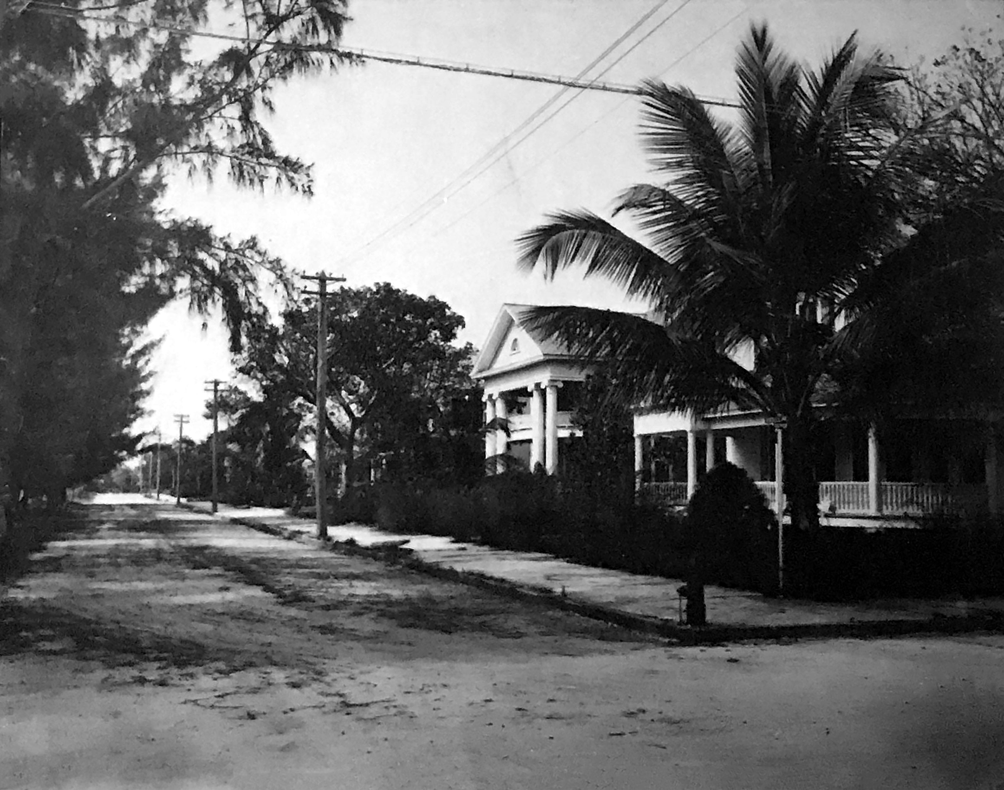 The cover photo captures the serene character of early Brickell. The homes shown were built either by members of the Brickell family or by some of Miami’s most accomplished early settlers. This particular block, bounded by Brickell Avenue to the east, SE 6th Street to the north, and SE 7th Street to the south, was emblematic of the neighborhood’s early composition.