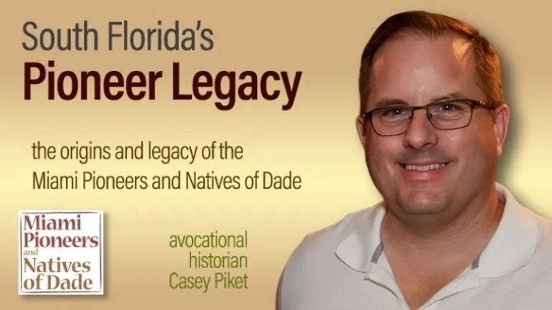 Casey Piket is a fifth-generation Miamian whose family first arrived in the city in 1899. An avocational historian, he is the founder of the Miami History Project, which includes the Miami History Blog on Substack and the Miami History Podcast. The podcast is available across multiple platforms, including Apple Podcasts, Spotify, and other major streaming services, as well as through the Substack site at www.miami-history.com.