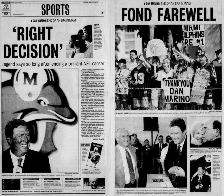 OTD: March 13, 2000 - Miami Dolphin’s Legend Dan Marino Retires