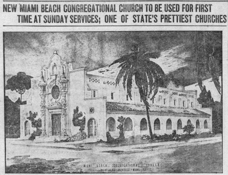 OTD: March 14, 1920 - Miami Beach Congregational Community Church Held First Service in New Chapel