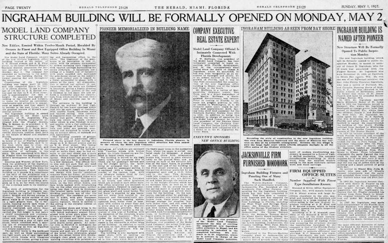 On Monday, May 2, 1927, the Ingraham Building, at 25 SE Second Avenue in downtown Miami, celebrated its formal opening.